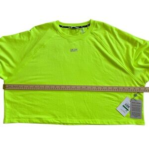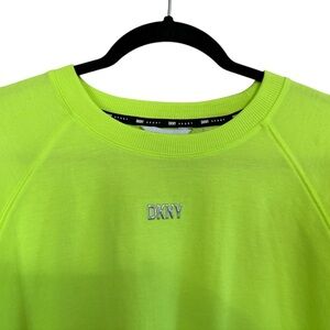 NWT DKNY Sport Neon Green Yellow Women's Crewneck Cropped Sweatshirt Pullover