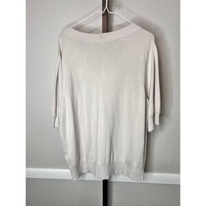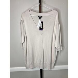 NWT DKNY Sweater Puff Sleeves V-Neck Lightweight Knit Birch Cream Womens XXL