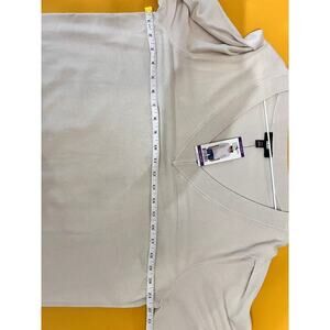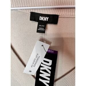 NWT DKNY Sweater Puff Sleeves V-Neck Lightweight Knit Birch Cream Womens XXL
