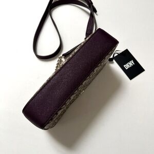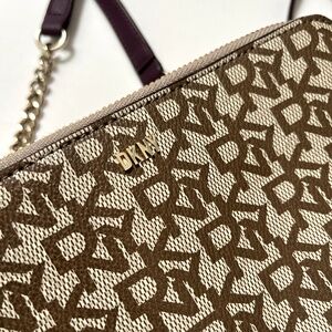 NWT DKNY Veronica Crossbody Bag Monogram Brown Plum Chain Strap Logo Purse