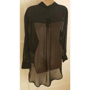 NWT DKNY WOMEN'S BUTTON-DOWN CHIFFON BLACK SHIRT XLARGE