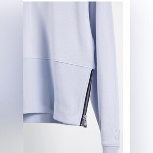 NWT DKNY Women's Cotton Performance Cropped Zip-Detail Sweatshirt. Blue, Size Small