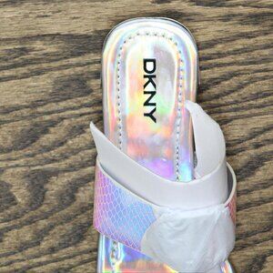 NWT DKNY Women's Footwear Isha Flat Sandal K4169795 Silver Iridescent Halcott 7M