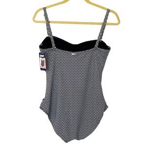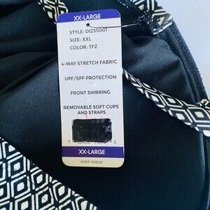 NWT DKNY Womens One Piece Swimsuit Black White Strapless Option Built In Bra XXL