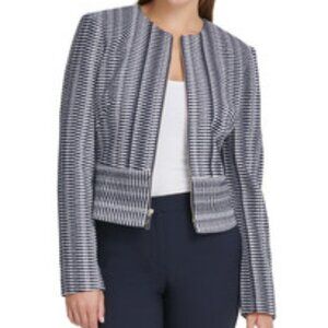 New with tags DKNY Black and white fully lined jacket. Zip front Various sizes Great in a professional setting or job interview stock photo in navy and white Various sizes available! Material: 87% Polyester/11% Rayon/2% Spandex Care: Dry clean Size Type: Regular Style Type: Blazer Occasion: Sleeve: Long Sleeve Made In: Indonesia