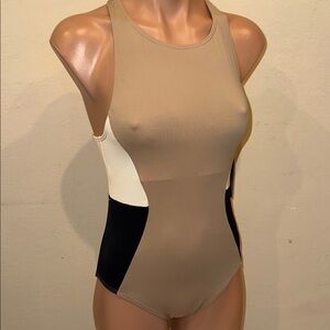 NWT DKNY one piece swimsuit high neck racer back zipper size 6