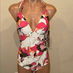 NWT DKNY one piece swimsuit size 8 underwire shoulder tie