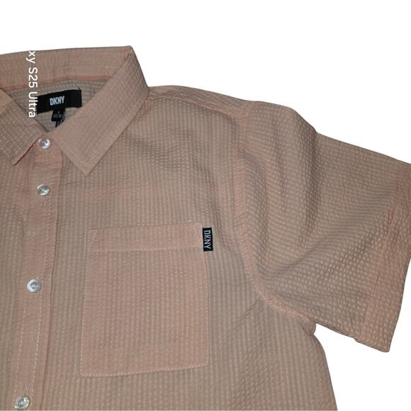 NWT DKNY salmon short sleeve button up youth L 14/16