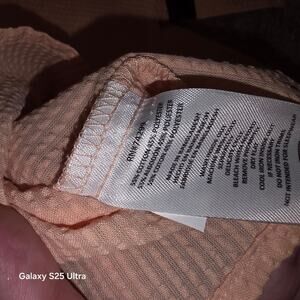 New with tags, this salmon-colored shirt features short sleeves and a classic button-up design.