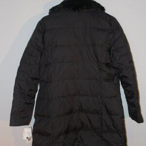 NWT DKNY Water Repellent Down Puffer Coat w/Faux Fur, Black, Women's L