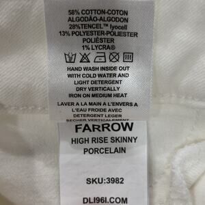 Elevate your denim collection with the sleek and modern DL1961 Farrow Skinny Jeans in a crisp white hue. Designed for the fashion-forward woman, these jeans feature a flattering high rise and a snug, form-fitting silhouette that's sure to turn heads. Crafted with premium denim fabric, these size 30 jeans offer both comfort and durability. Embrace the perfect blend of style and function with these must-have jeans from DL1961's esteemed collection.