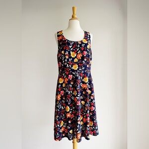 Pretty Navy Floral Fit and Flare Skater Dress, size 14.