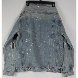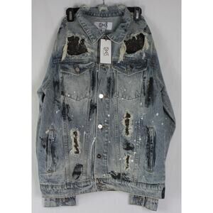 NWT DNA Premium Mega Distressed Denim Jean Jacket Mens L paint studded punk