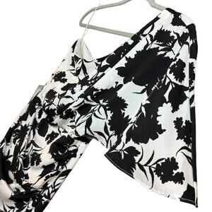 NWT DO+BE black and white floral one shoulder flutter sleeve midi dress small