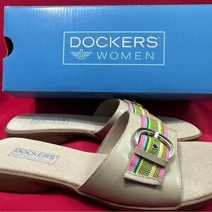 NWT DOCKERS DKRILEY BEACH/PK/GRN Slide Leather Sandals Women’s 6.0