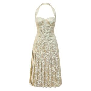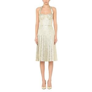 NWT DOLCE & GABBANA Gold Bustier Midi Pleated Dress Lame Jacquard 40 S
