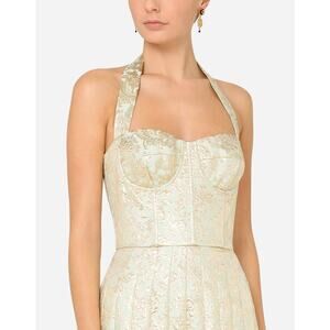 NWT DOLCE & GABBANA Gold Bustier Midi Pleated Dress Lame Jacquard 42 M