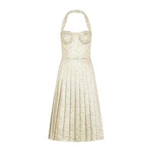 Sophisticated lurex jacquard fabric comes in a delicate hue to emphasize the stylish retro shape of this dress with pleated skirt to create timeless, romantic femininity: