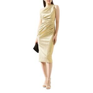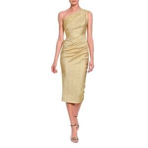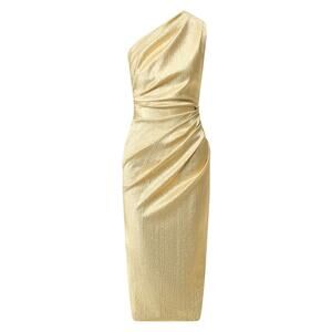 NWT DOLCE & GABBANA One-shoulder Metallic Silk blend Midi Dress Gold 40 S