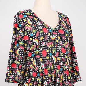 NWT DOLLY & DOTTY Black & Rainbow Retro Print Flare Dress Size 12