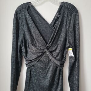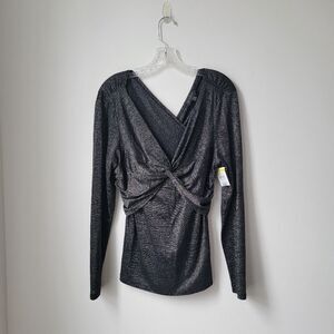 NWT DONNA KARAN DKNY Wrap Twist Top Metallic Silver Size Large