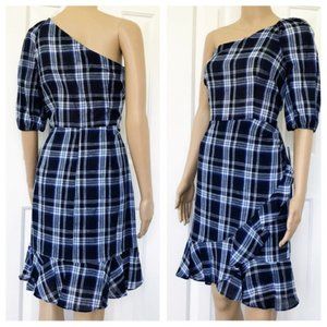 NWT DONNA MORGAN One Shoulder Plaid Dress size 10