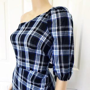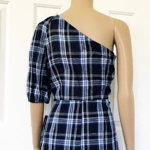 NWT DONNA MORGAN One Shoulder Plaid Dress