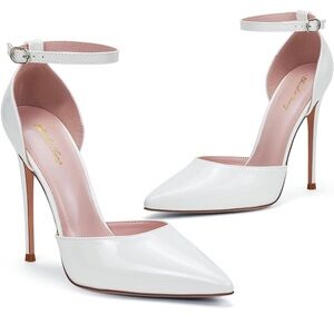Every woman needs a pair of elegant white heels in her wardrobe — the pair you pull out for the most meaningful milestones. Whether it’s the perfect finishing touch to a bridal look, a classic choice for graduation day, or a polished heel for a sorority event, these pointed-toe stilettos are designed to deliver timeless sophistication when it matters most. The chic d’Orsay silhouette and slim ankle strap flatter the leg line and add balance to everything from formal dresses to tailored jumpsuits, making them an essential style staple for once-in-a-lifetime moments.