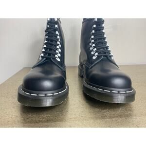 NWT DR MARTENS BOOTS 9 BLACK LEATHER SMOOTH 1460 LACE UP WHITE FAIRY GRUNGE GOTH