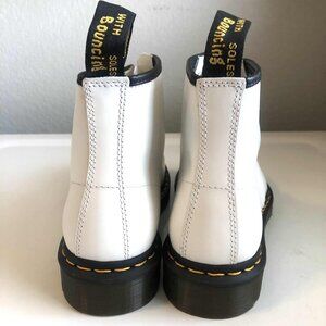 The Original Iconic Doc Martens Zavala Combat Boot in durable white leather and contrasting black laces with Logo Pull-on Loops...
