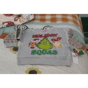 Dr. Seuss The Grinch Holiday Squad Christmas Sweatshirt for toddlers.