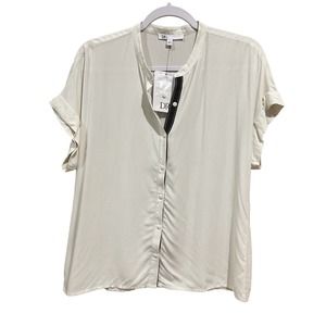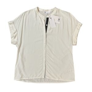 NWT DR2 Women’s White Short Sleeve Button Up Blouse Size Medium M Top Shirt NEW
