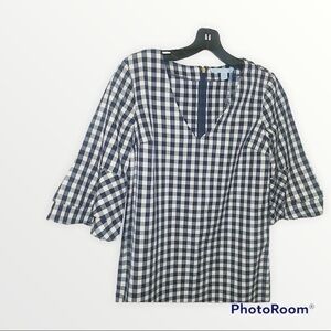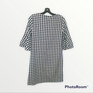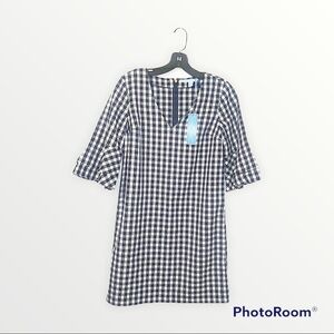 NEW with tags DRAPER JAMES Navy Blue White Gingham Bell Sleeve Mini Shift Dress