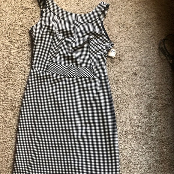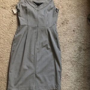NWT DRESS ,BLACK/White back zipper,fake belt front ,size 4 P,black lining,slit on the back.