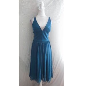NWT DRESS THE POPULATION Peacock Blue ALICIA Mixed Media COCKTAIL Midi DRESS XL