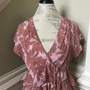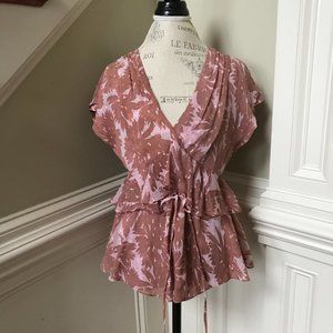 NWT DVF Millie Metallic Blouse Top Shirt Womens XS Pink Mauve V-Neck Chiffon NEW