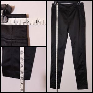 Super sweet and sexy DVF skinny cigarette pants. These skinny pants feature bias seams at the front and back. Banded waist. 15" across waist, 40" length. 48% Acetate, 45% Nylon, 7% Elastane.