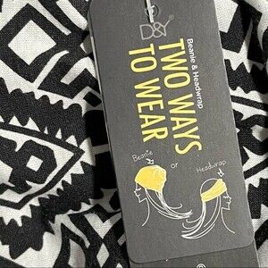 This D&Y Black & White Graphic 2 in 1 Beanie & Headwrap Headband is brand new with tags.
