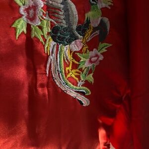 NWT Da Shang Hai Blue/Red/Gold Reversible Belted Collared Pockets Kimono Size M