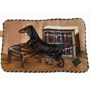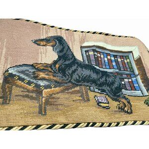 NWT Dachshund Dog Pet Needlepoint Pillow Cover 18 X 11" Piping Zipper Solid Back