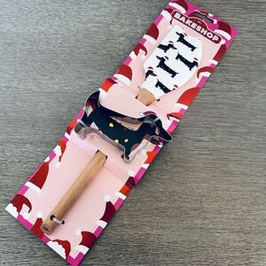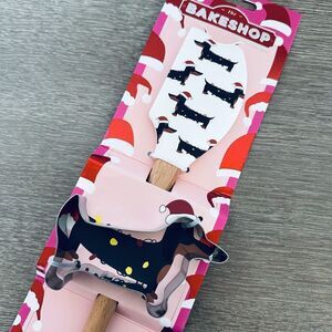 NWT dachshund dog Christmas winter holiday white silicone spatula and dog shaped silhouette cookie cutter baking set.