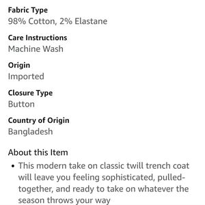 NWT Daily/Ritual Stretch Twill Trench Coat-Sweet Corn