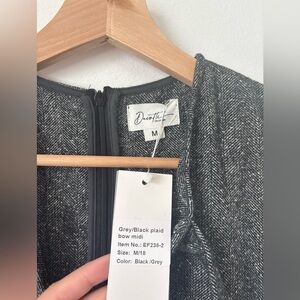 NWT - Daintti Plaid Bow Midi Dress – Black/Grey – Size M