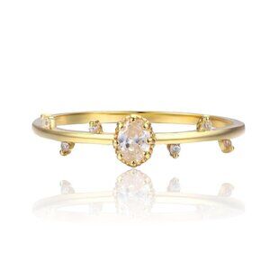 NWT Dainty Ring 14K Gold Plated Oval Cubic Zirconia Sz. 8 Delicate Fairy