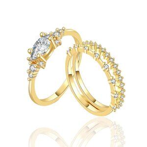 NWT Dainty Ring Set of 3PCs 14K Gold Plated Cubic Zirconia Sz.7 Fairy