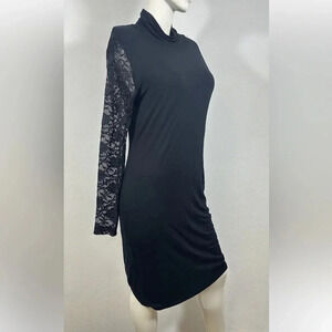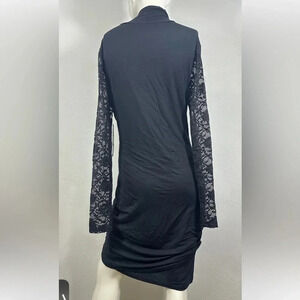 NWT Daisy Fuentes Black Turtle Neck Lace Long Sleeve Bodycon Dress Size L