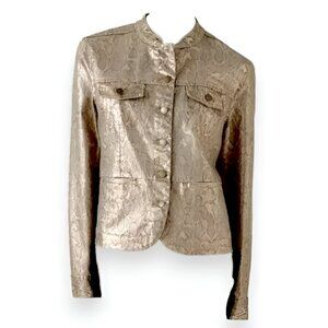 NWT Dana Buchman Snakeskin Python Metallic Tan Gold Foil Moto Jacket Coat L 10