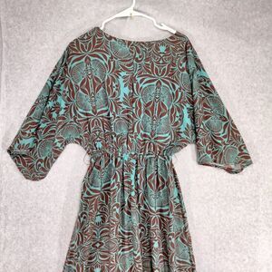 NWT Dance & Marvel Maxi Dress Womens Small Green Brown Faux Wrap Geometric Flowy