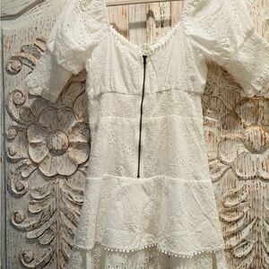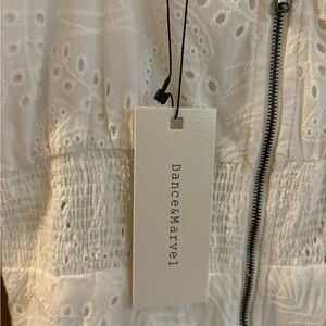 NWT Dance & Marvel White lined eyelet smocked zipper back dress. Size S