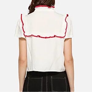NWT Dangerfield White/Red Retro Little Bitter Frilly Coquette Blouse Top, Women's Size 18.